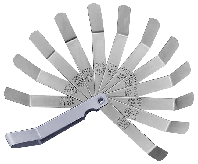 - Contains: Twelve - 4" x 1/2" blades with thicknesses .008, .010, .012, .013, .014, .015, .016, .018, .019, .020, .025, .026.