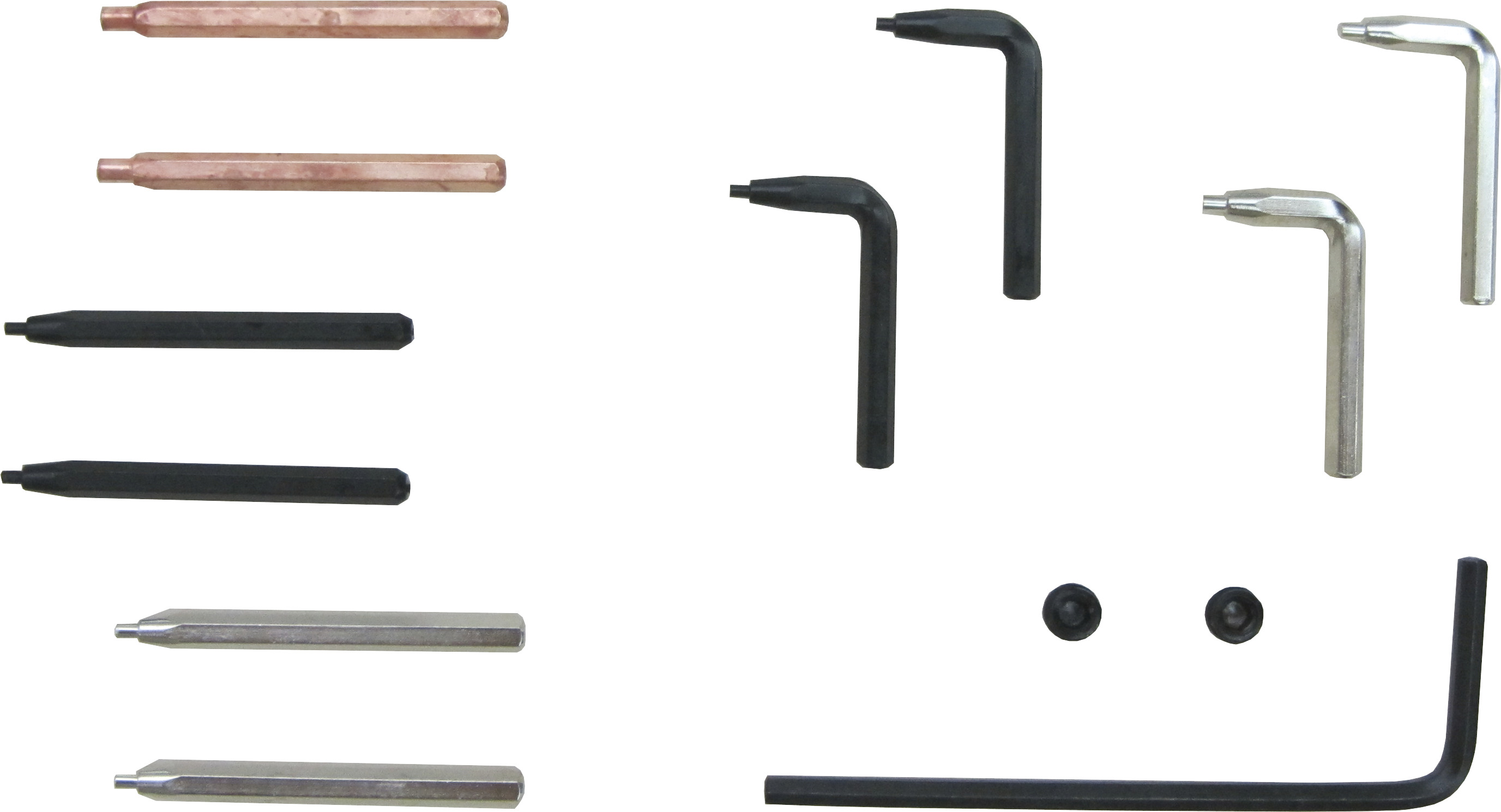 - Includes 5 pairs of color-coded, interchangeable tips, set screws and Hex