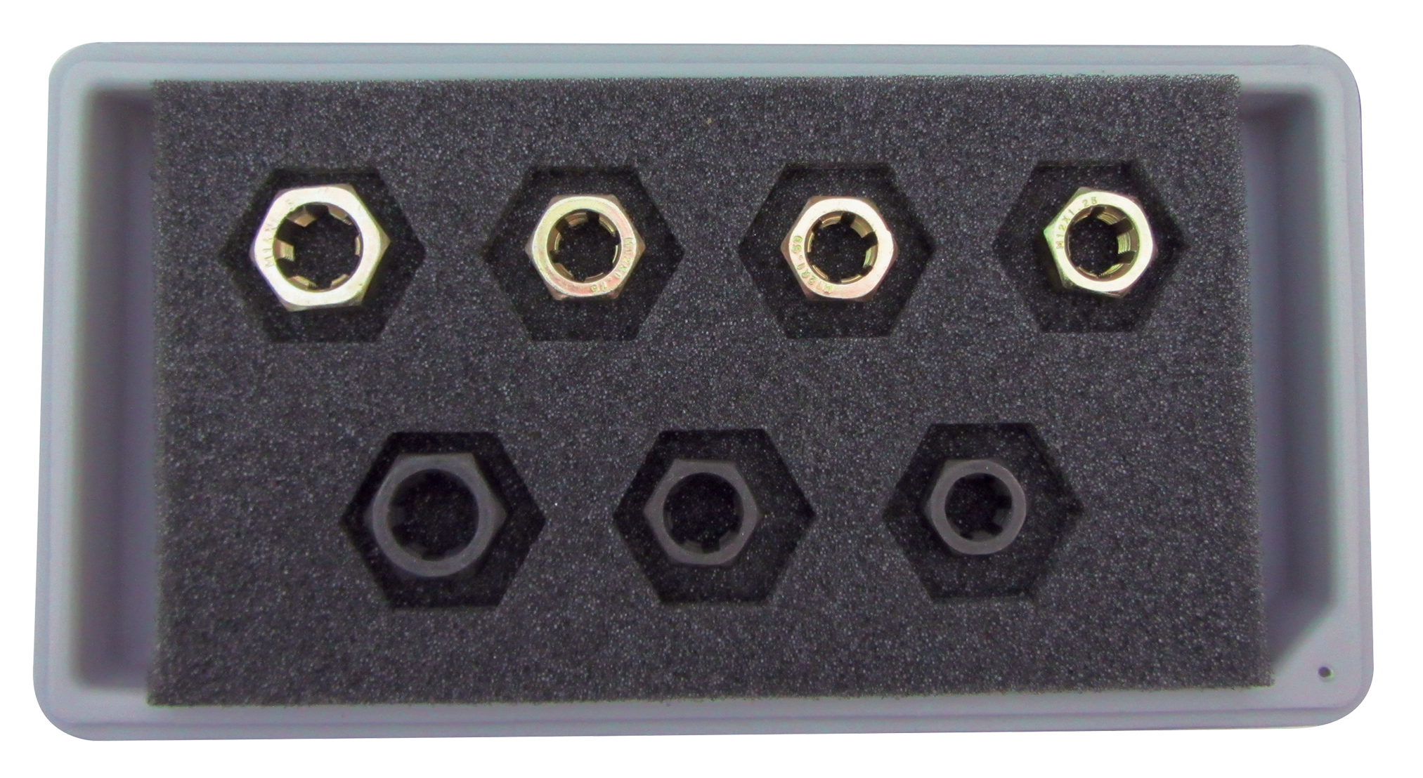 - Sizes include: 7/16"-20, 1/2"-20, 9/16"-18, M12-1.25, M12-1.50, M12-1.75, M14-1.50
