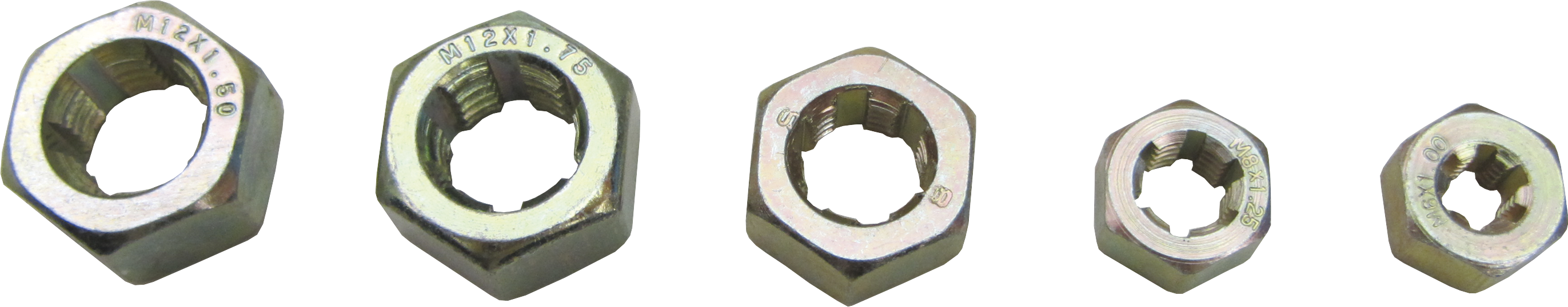 - Sizes: M6-1.00, M8-1.25, M10-1.50, M12-1.50, M12-1.75