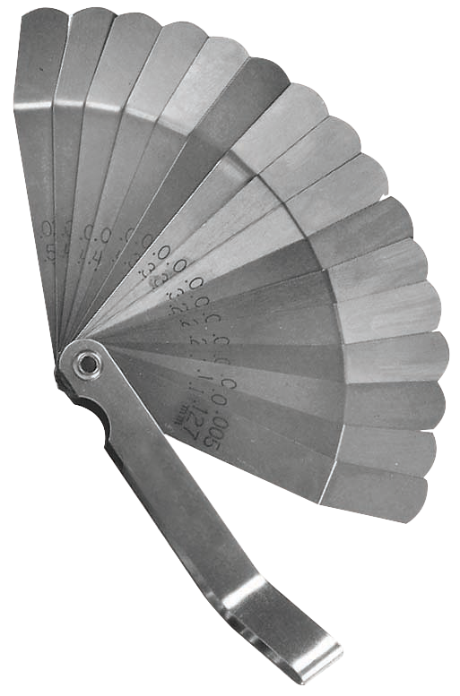 - Contains: Sixteen - 4" x 1/2" blades with thicknesses .005, .006, .007, .008, .009, .010, .011, .012, .013, .014, .015, .016, .017, .018, .019, .020