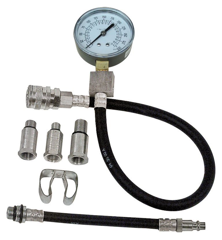 - Includes 10, 12, 14, and 18mm long reach adapters to test most engines. Extra long 16" hose for gauge to reach handle bars.